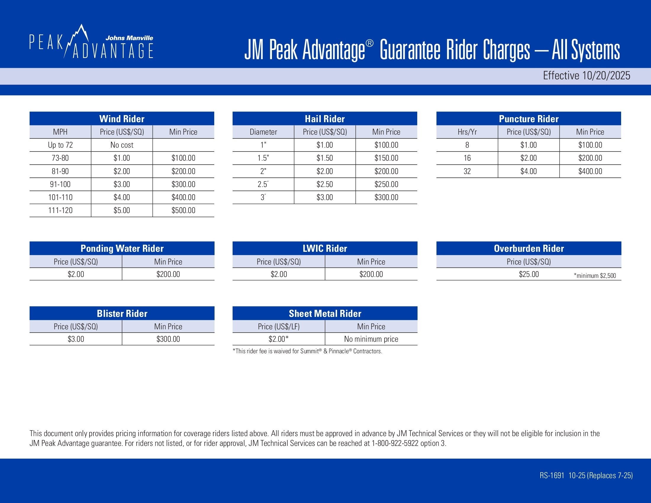 As certified installers we can go up to 30 year NDL (No Dollar Limit) warranties, including things like wind riders and other exceptions, just ask for details and we'll help you select the right product for your needs.